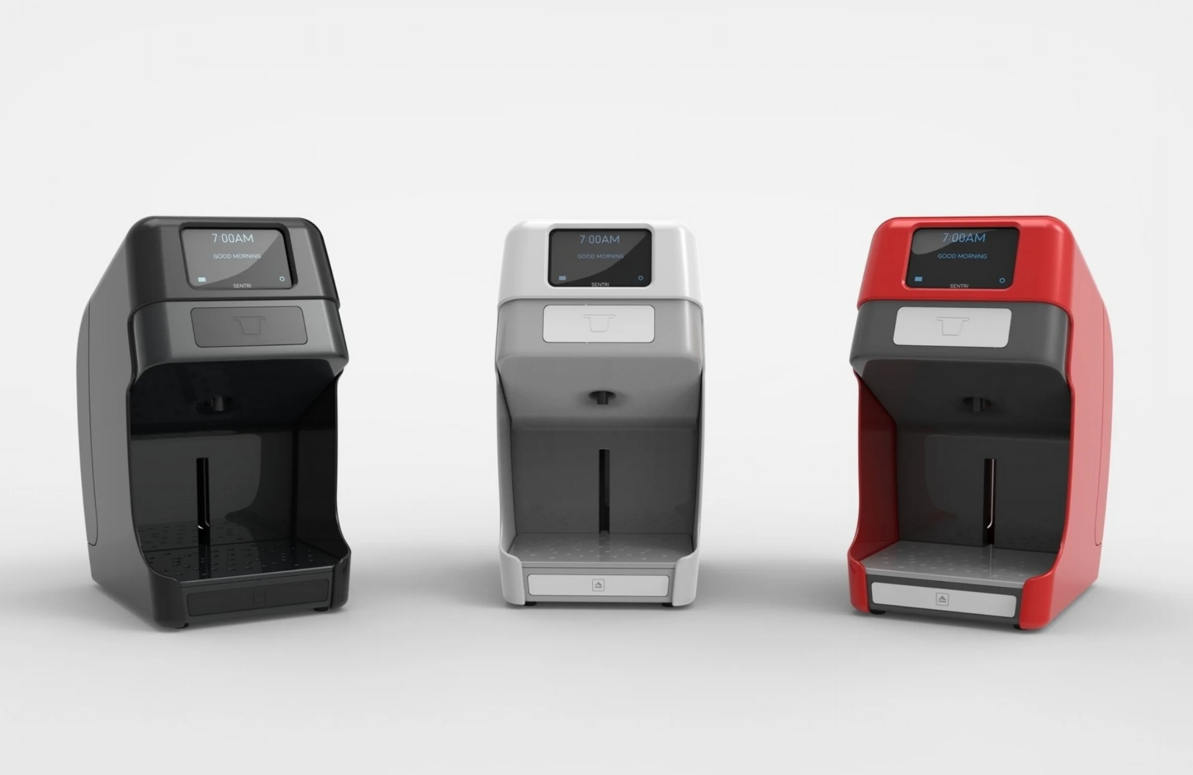 Sentri the coffee maker that creates a cup of coffee with the gesture of service. Designed for the Italian coffee market, Sentri is designed with the intention to create, serve and clean up after its user. The beautiful counter top design is built with a height adjustable drain plate, spring actuated drip pan and a automatic K-cup disposal system that allows the next person to use Sentri with out obstacle. Its timeless design accommodates for home or office applications with out looking out of place or calling for attention. Let your next cup of coffee be served with Sentri.